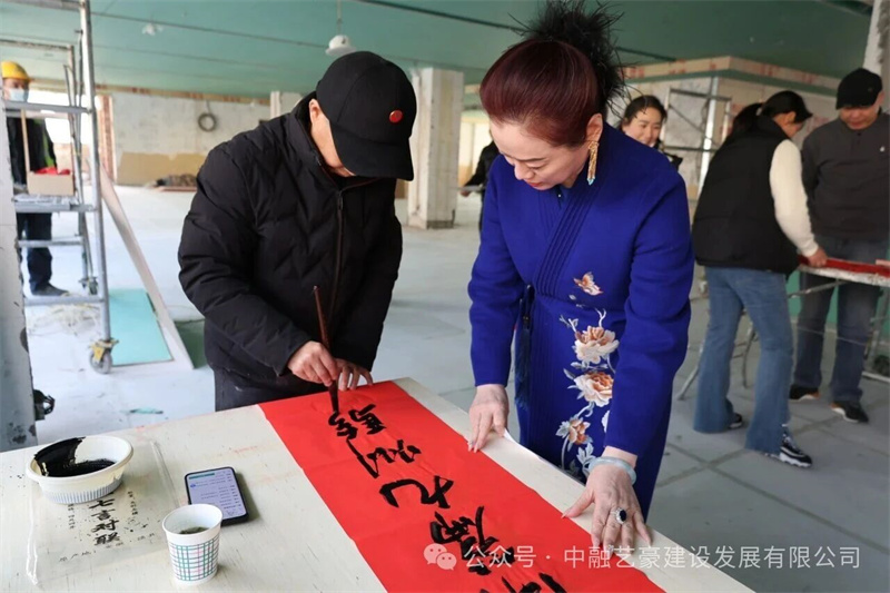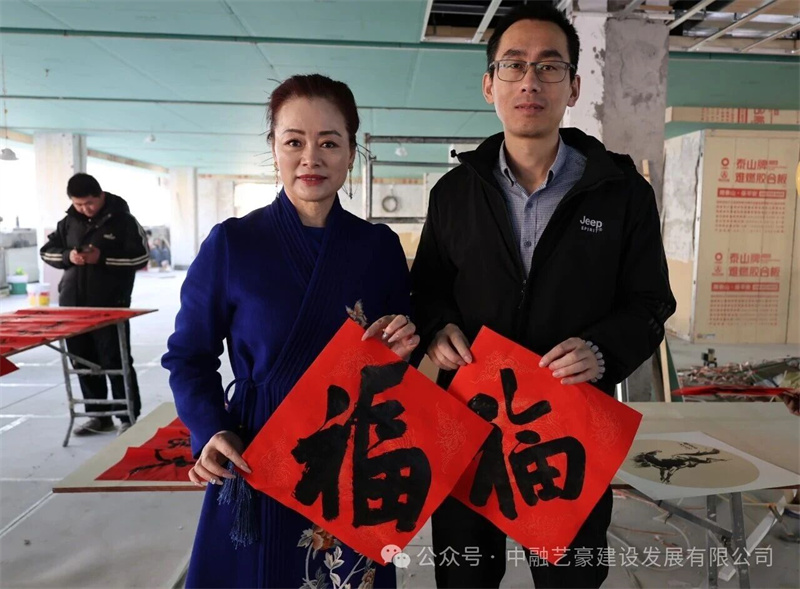 中融艺豪建设发展有限公司董事长、兰州市政协委员、兰州市慈善总会执行会长张艳代表项目施工单位,对到场的嘉宾、艺术家们致以诚挚的感谢。她表示,各位艺术家冒着严寒亲临工地送福,这份深情厚谊不仅为冬日的施工现场增添了喜庆祥和的氛围,更彰显了社会各界对一线建设者的深切关怀与责任担当,为全体施工人员注入了强大的精神动力。同时,她也向坚守在项目一线、辛勤付出的工人们表达了衷心的感谢与美好的新春祝福,勉励大家在新的一年里再接再厉、安全施工,高质量完成项目建设任务。