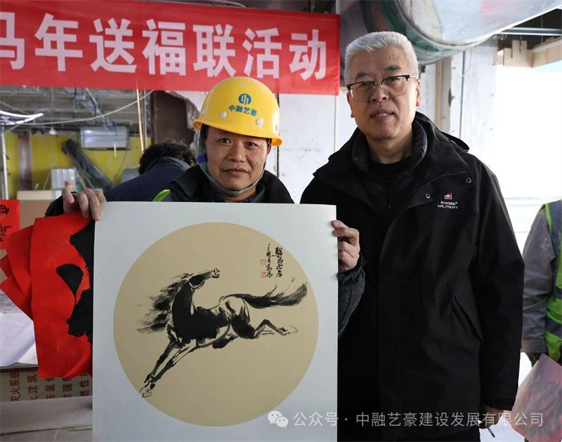 活动现场,墨香袅袅、暖意融融。多位书法艺术家凝神挥毫,笔走龙蛇间尽显汉字风骨,一副副寓意吉祥的春联、一个个苍劲有力的“福”字,在笔墨交融中新鲜出炉,字里行间既有“龙马精神”“马到成功”等马年专属的美好祝愿,更饱含着对一线建设者默默耕耘、无私奉献的崇高敬意。