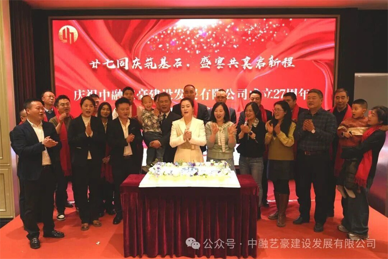 2026年恰逢中融艺豪成立27周年。年会上,全体与会人员共同唱响生日歌,为公司送上真挚祝福。一块满载情谊的蛋糕,一曲温暖熟悉的旋律,见证了公司二十七载的坚实步履,也寄托着所有人对未来的美好期盼。