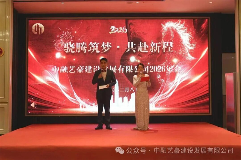 2026年2月8日,夜幕初临,名城广场滟金汇酒店三楼芬芳厅内灯火温馨、笑语盈堂。中融艺豪建设发展有限公司“骁腾筑梦·共赴新程”主题年会在此盛大举行。公司全体员工、合作伙伴、特邀嘉宾及员工家属等100多人欢聚一堂,共同回顾奋斗足迹,擘画崭新未来。
